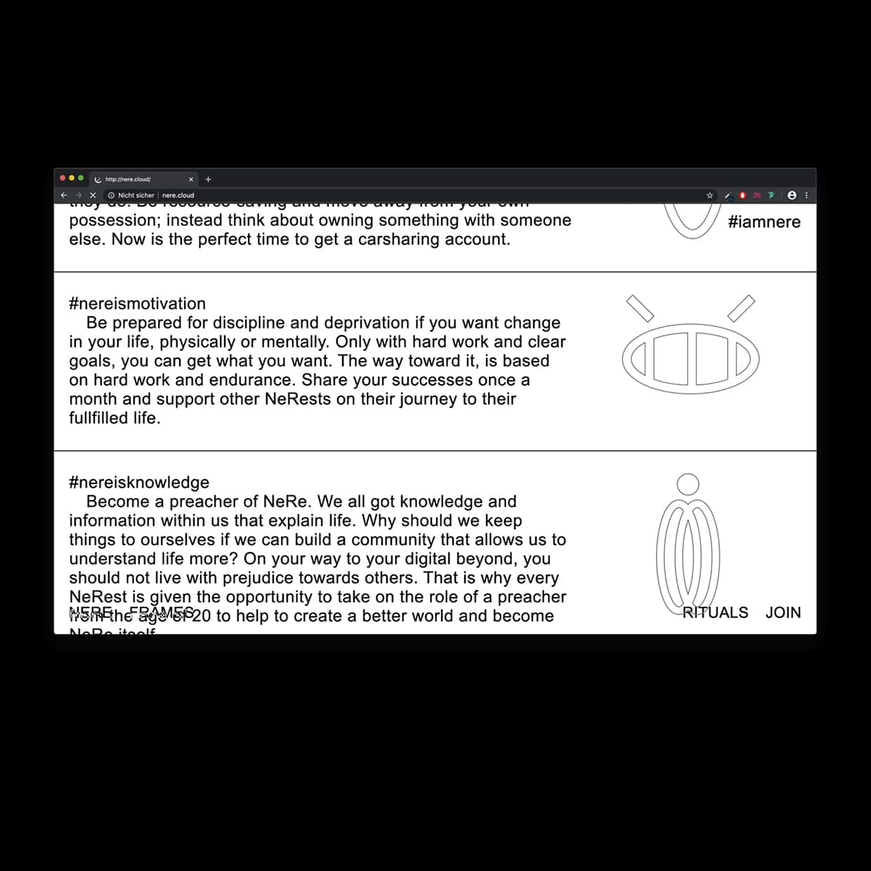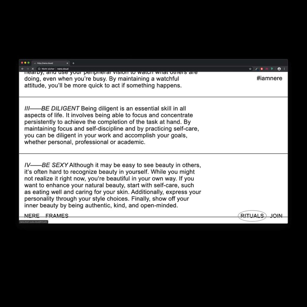 Bachelorarbeit | In gesellschaftlichen Debatten wird häufig davon ausgegangen, dass Religion an Bedeutung verliert und zunehmend durch alternative Sinn- und Orientierungssysteme wie Sport, Ernährung oder Erlebnis ersetzt wird. Die Bachelorarbeit NERE greift diese Entwicklung auf und untersucht, warum Religion für viele Menschen ihre sinnstiftende Funktion verloren hat. Ziel war es, zu erforschen, wie eine neu gedachte Religion aussehen könnte, die sich an den Werten und Lebensrealitäten einer neuen Generation orientiert. Dabei wurde auch betrachtet, wie religiöse Konzepte, Rituale und Symbole unter digitalen und zeitgenössischen Bedingungen neu gedacht werden können.